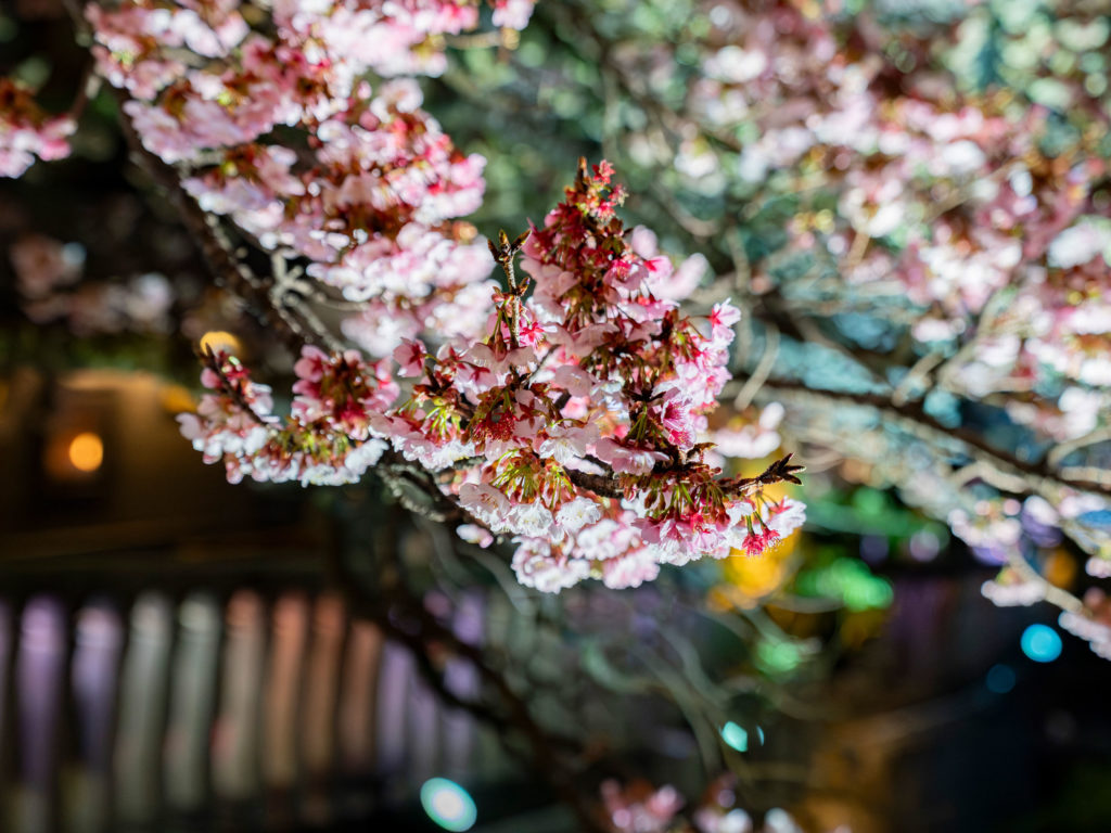 夜はライトアップされた幻想的な桜を楽しめる、贅沢なタイミングです。