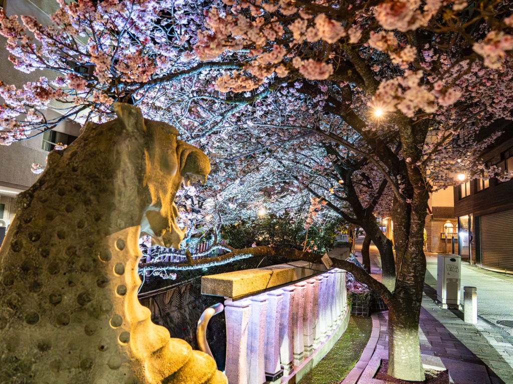 夜も楽しめる、糸川の桜ライトアップ