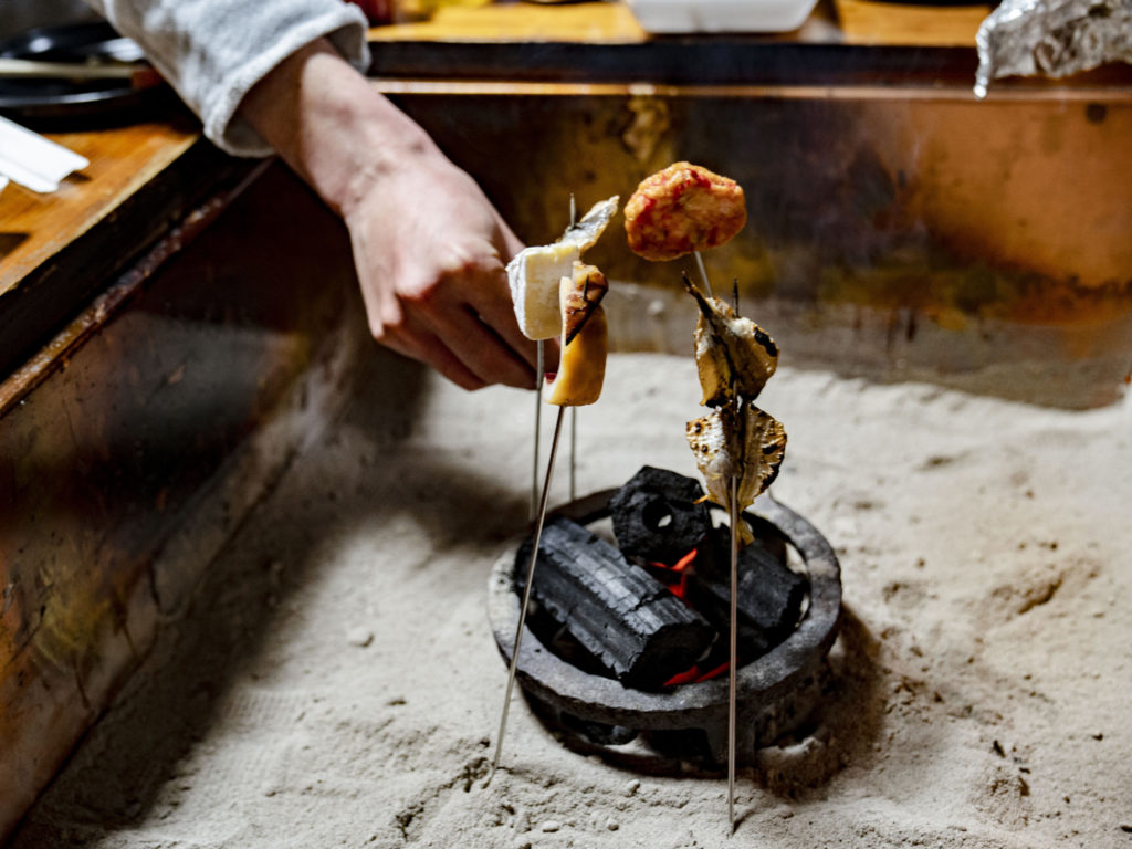 ・囲炉裏を囲んで、ゆっくり食事をする